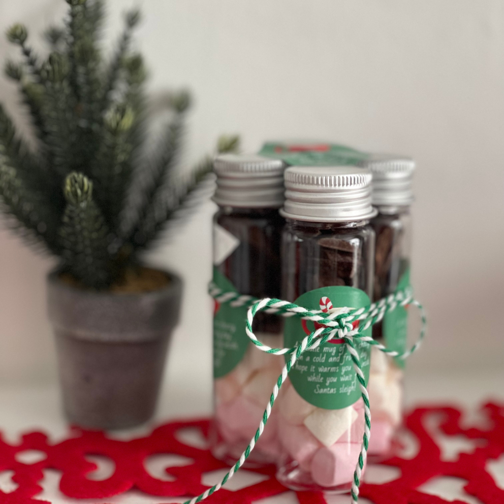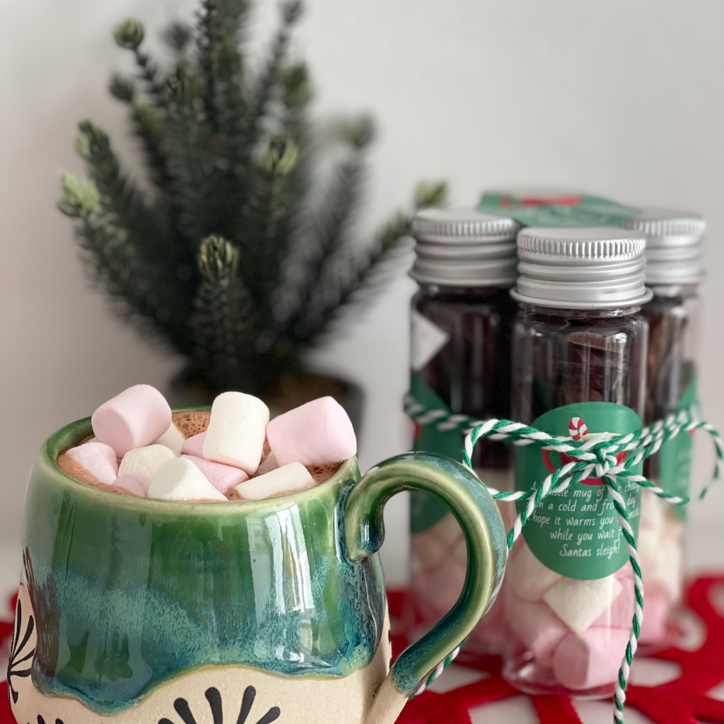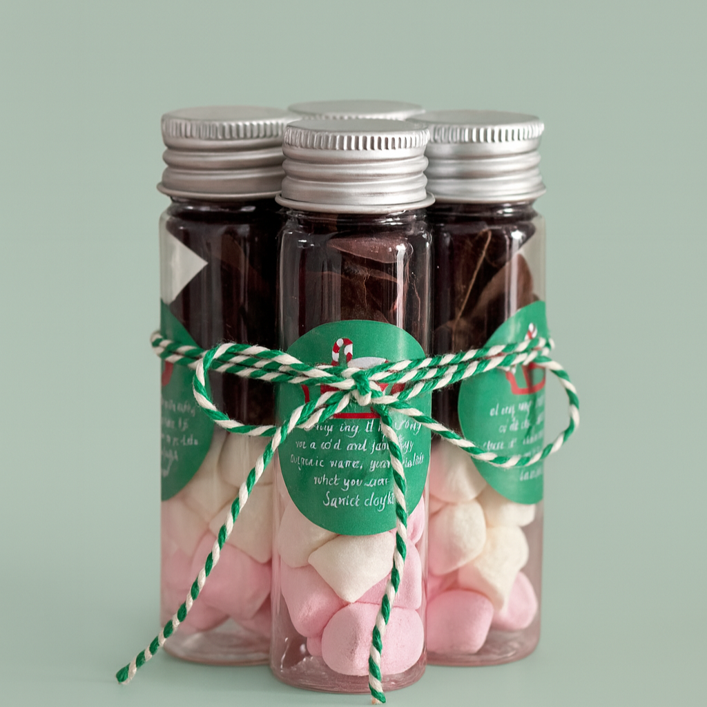 Build your own stocking fillers - mix and match cacao strengths, add mallows, and share the cocoa joy. If you would like more than 6 - let us know and we will make it happen.