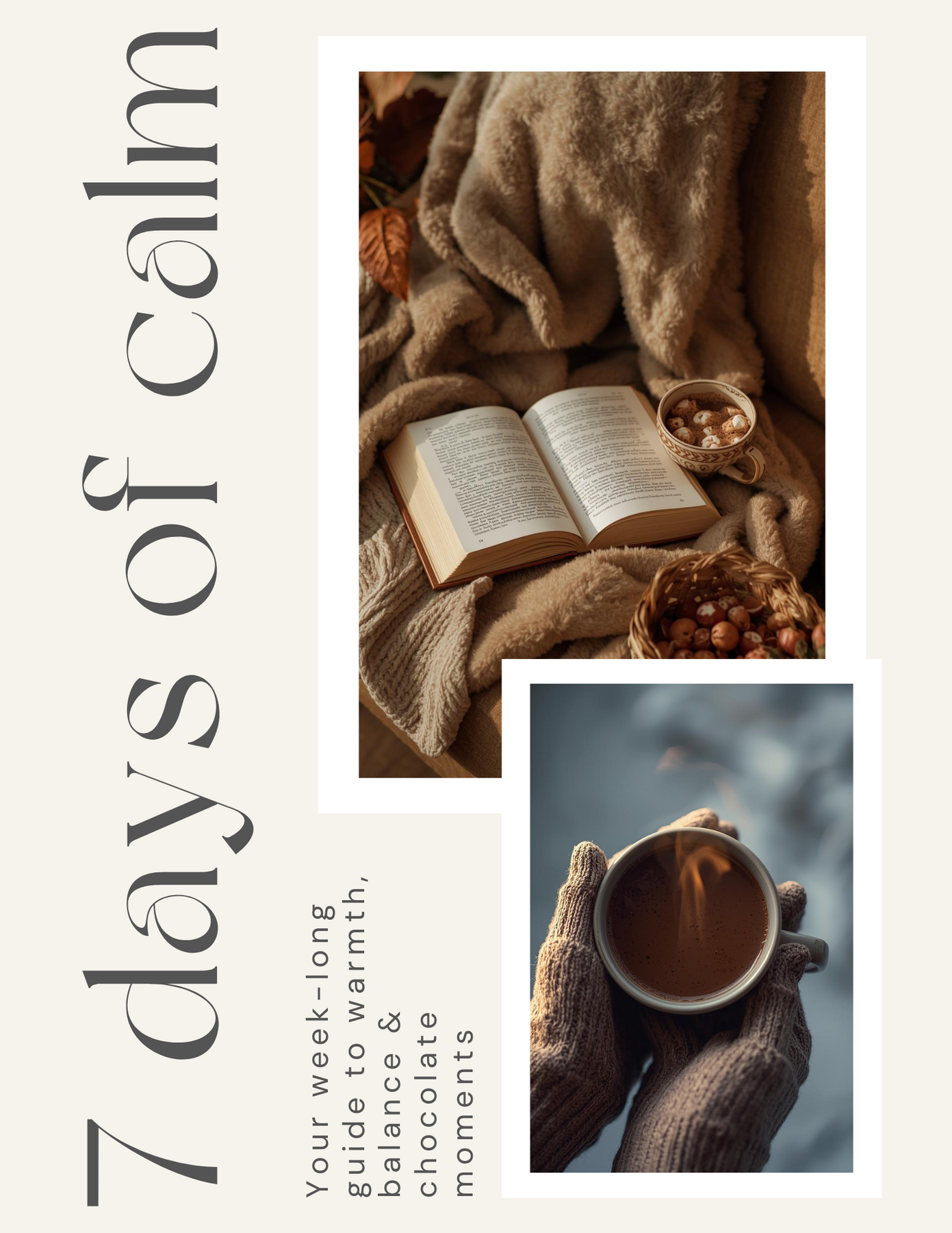 • 7 Days of calm rituals (mindset • movement • cocoa • recipe • evening tip)